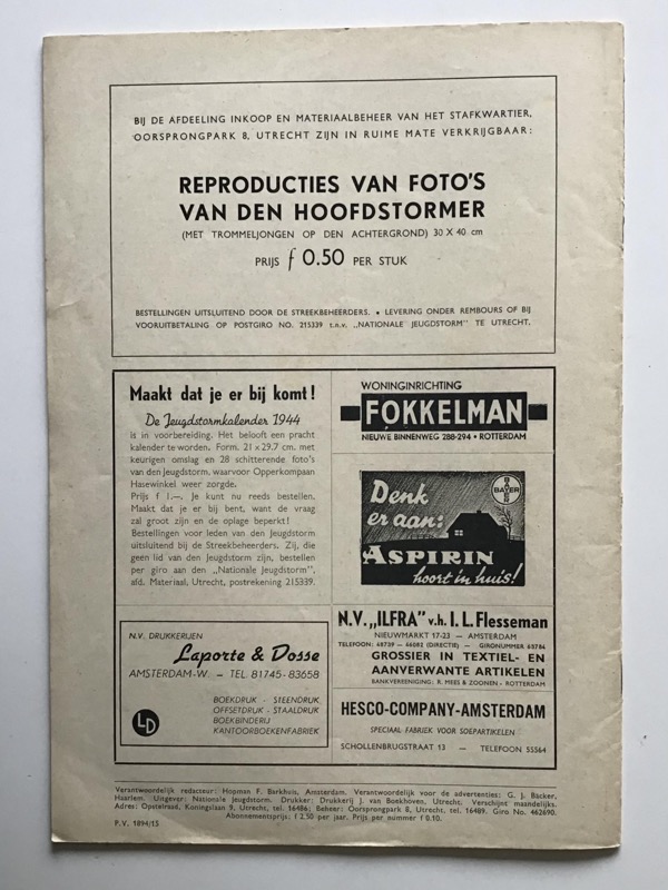 The association magazine, De Stormmeeuw, appeared from 15 November 1934 until April 1945. Especially the 1939/40 volumes and the final issues from August 1944 onward are very rare.