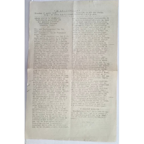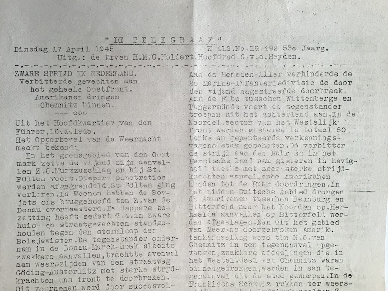 Original stencilled edition of DE TELEGRAAF, 17 April 1945, no. 19.