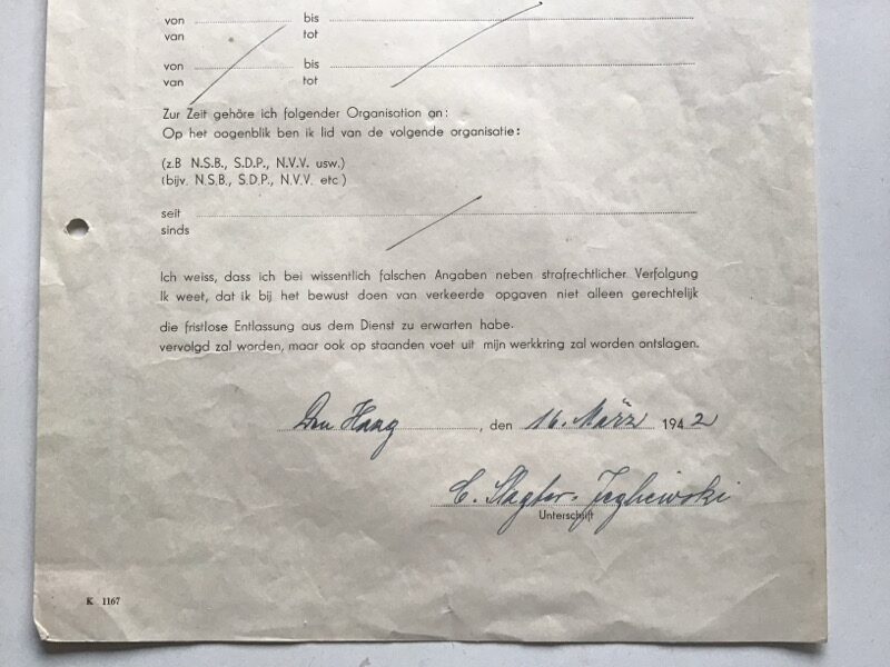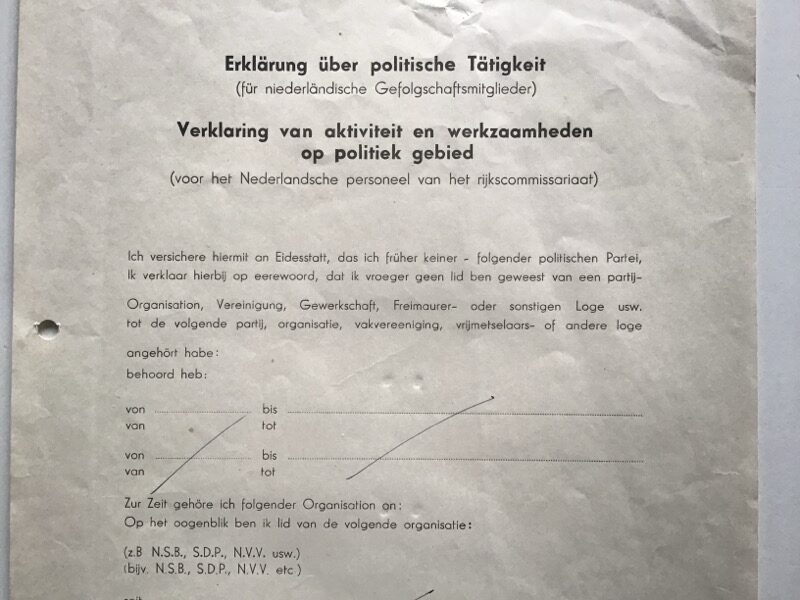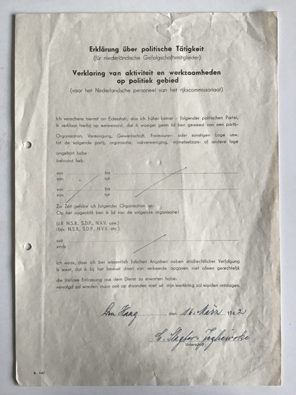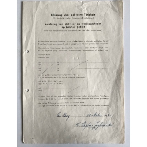 Original and completely filled-in declaration for Dutch personnel in German service.