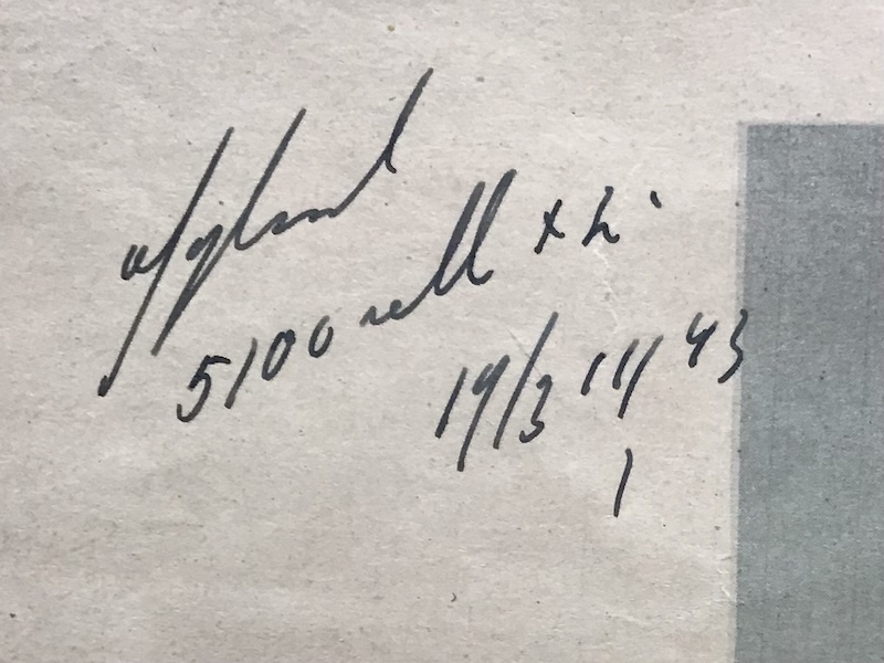 This copy, from the NRM, is a proof print. See also the handwritten note: Delivered 5100 sheets... 19/3/1943