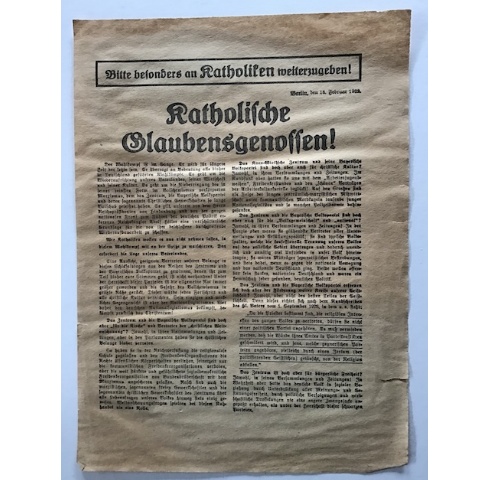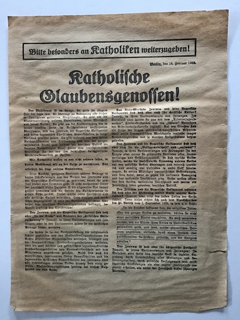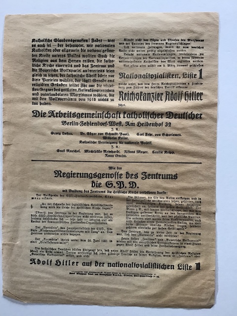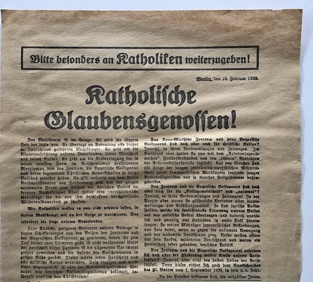 This Election Pamphlet Was Specifically Aimed at Catholics to Persuade This Group to Vote for the NSDAP of Adolf Hitler.