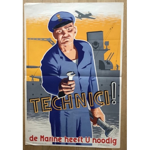 Naval Technicians Printed in LONDON at the end of the war to once again call on technicians to enlist in the navy.