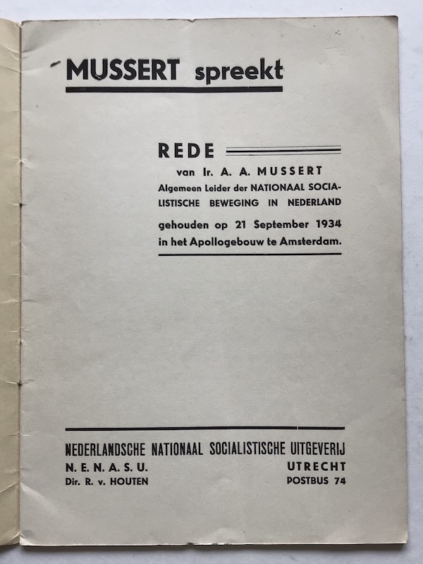 Speech by Mussert in the Apollo building in Amsterdam on 21 September 1934.