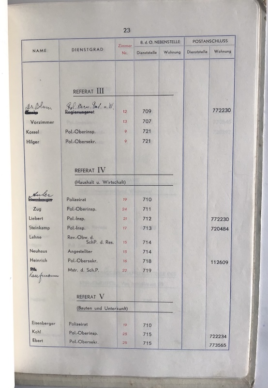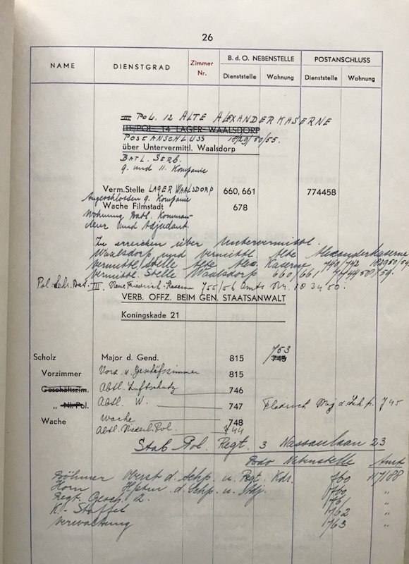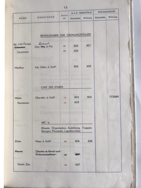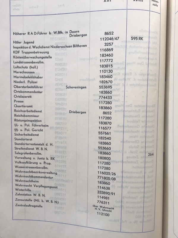 Telephone register of the commander of the ORDNUNGSPOLIZEI, for the occupied Dutch territories.