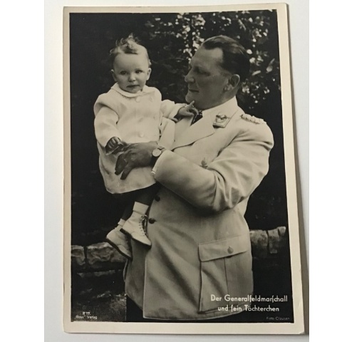 Unused and original postcard of Hermann Göring with his little daughter.