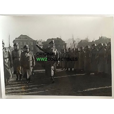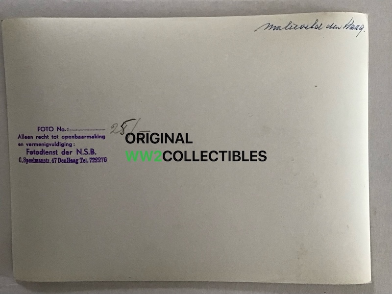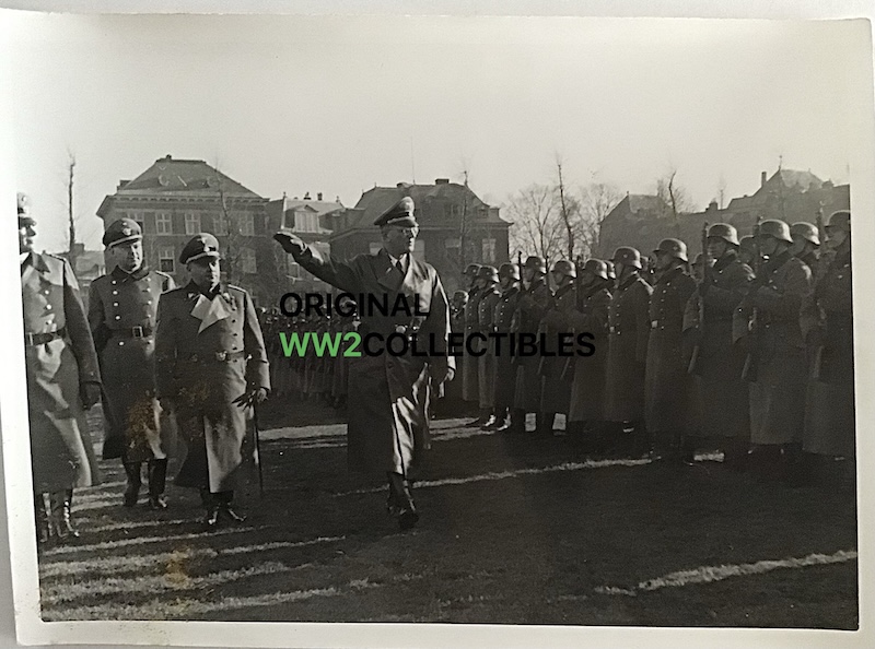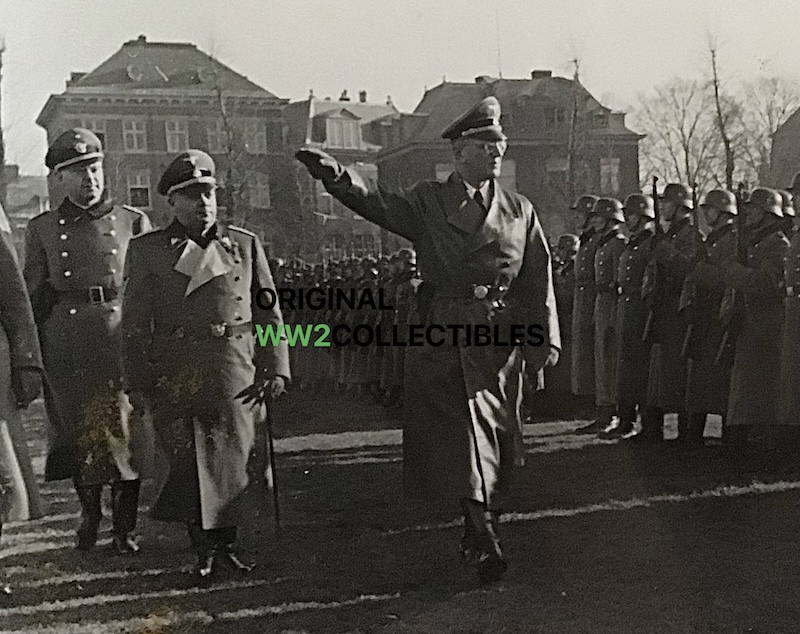 Original photo of Seyss‑Inquart inspecting assembled German police troops. Although “Malieveld” is written on the reverse, the location is the Museumplein in Amsterdam, identifiable by the two buildings visible in the background (see comparison: https://www.amsterdamstreetside.nl/OnePagers/20052005-04-30P4300010.htm).