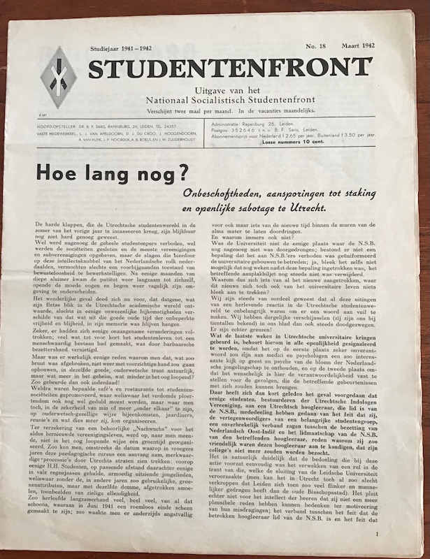 Original edition of the NSB magazine for students: STUDENTENFRONT, No. 16, March 1942.