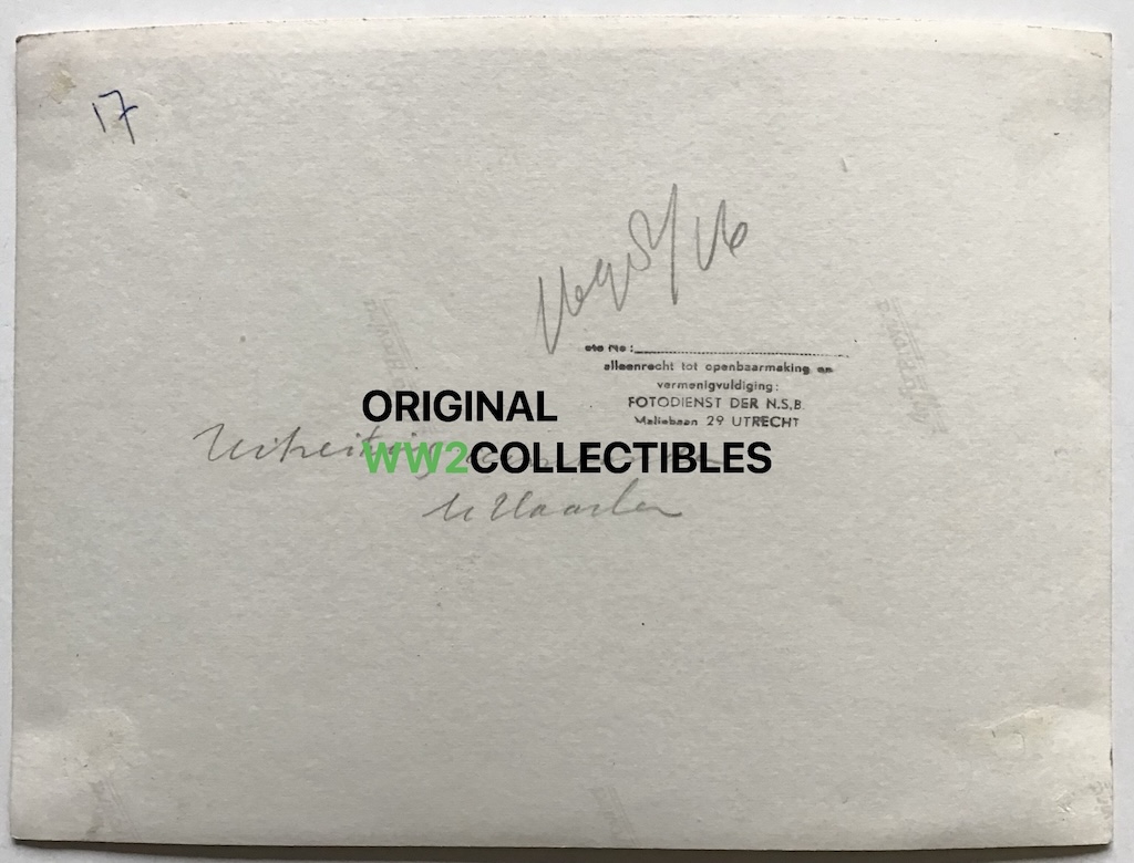 Unique and original photo of the commander, A.J. Zondervan, handing out armbands to the members of a vendel. It is likely that this concerns the vendel Hans Pelzer.