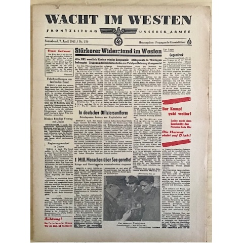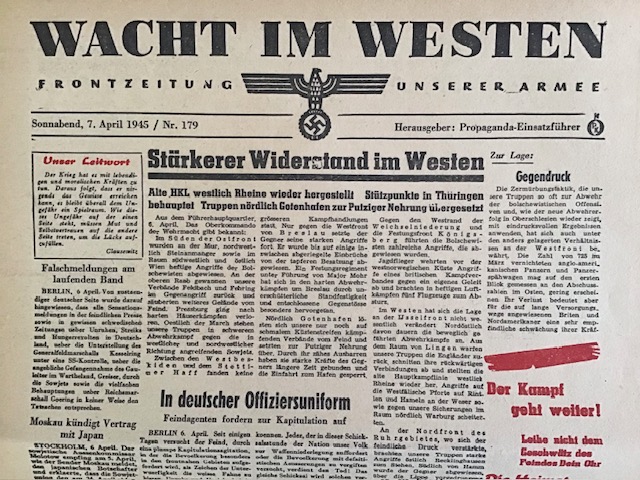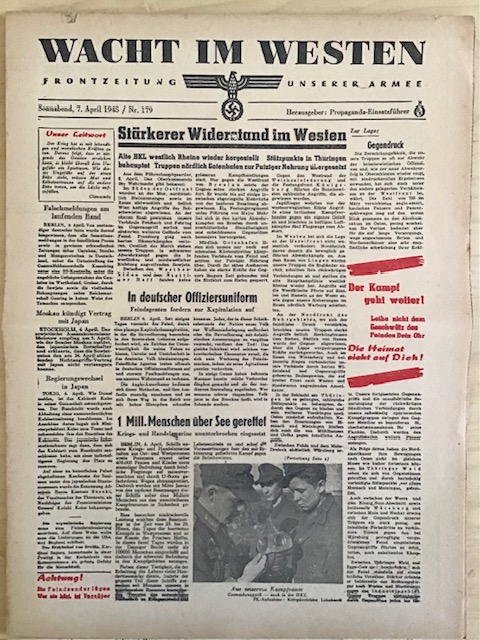 Original issue of the FRONT NEWSPAPER Wacht im Westen. April 7, 1945: €20