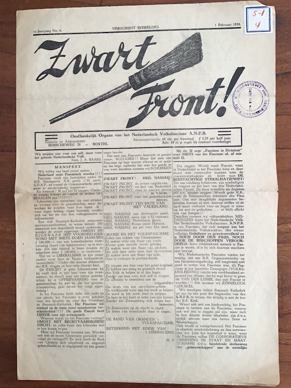 ZWART FRONT, 1st volume no. 6, 1 February 1934