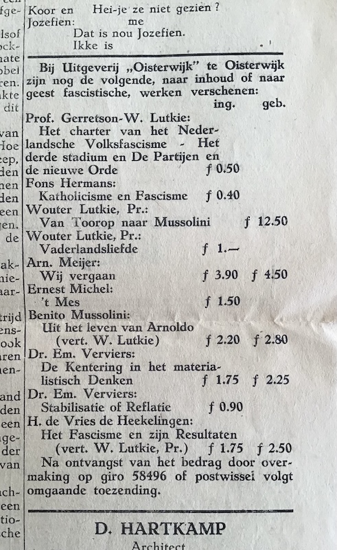 Fine copy of this extremely rare early fascist newspaper of the A.N.F.B. (General Dutch Fascist League). The leader of this small organization (barely 4000 members) was Jan Baars. This splinter party existed from 1931 to 1934. This weekly issue was therefore printed just before the dissolution of the party.